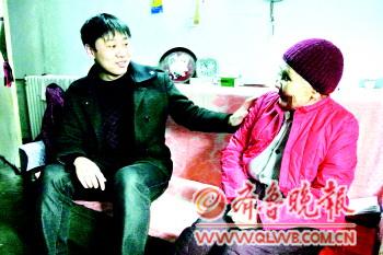 心心酒業采購部部長韓福林與老人聊天。馬輝 攝