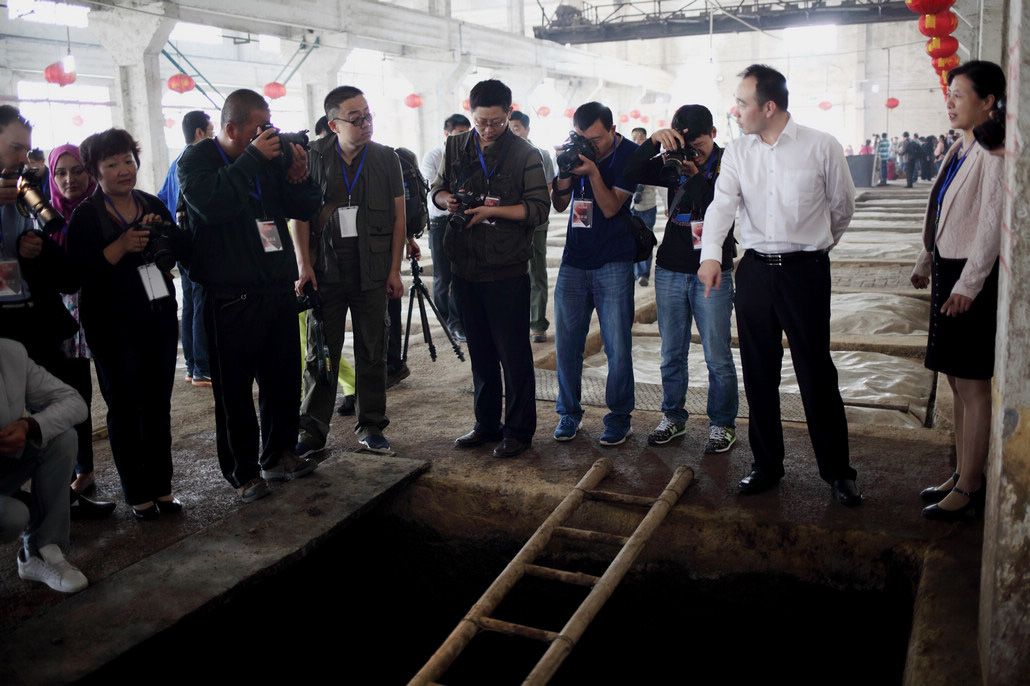 參賽的各位朋友們在公司講解員的介紹和引導下,了解了心酒的發展歷程,來到了糧食酒生產車間。生產車間熱氣騰騰的工作場面,調動起了早已按捺不住的創作沖動,紛紛拿起手中的長槍短炮拍個不停。他們尋找不同角度,努力拍到自己想要的畫面,或站、或蹲、或趴在地上,或攀上高處,或讓工人放慢操作速度,或讓我們的美女講解員臨時客串起了“模特兒”,就連董事長也未放過,或合影,或當講解員,或端起酒杯一起品嘗熱騰騰的原酒。