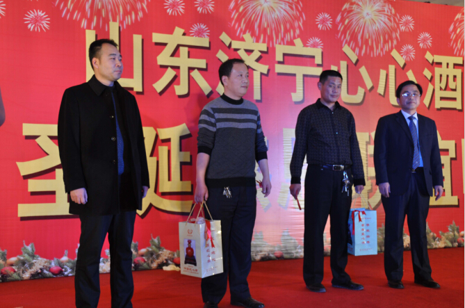 董事長韓宇在聯誼會上發表了熱情洋溢的祝酒辭。董事長講到,心酒產品多年來一直得到嘉祥廣大父老鄉親的厚愛,有力地促進了心心酒業持續穩定的發展,同時我們也與以嘉祥大酒店為代表的廣大合作伙伴培養出了深厚的感情,結下了深厚的友誼。我們在合作中風雨同舟、患難與共、共克時艱、共同發展。借此機會,向嘉祥大酒店及在座的各位嘉賓表示衷心的感謝,并致以節日的祝福。