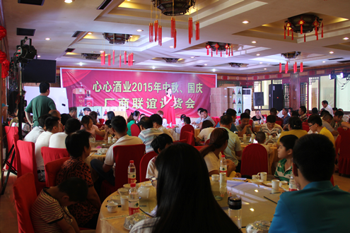 8月25日心心酒業(yè)2015中秋、國慶廠商聯(lián)誼訂貨在太白酒樓圓滿舉行,訂貨會上推出了多項針對經(jīng)銷商的利好政策,并且準備了精彩的文藝演出、現(xiàn)金禮包和窖藏好酒回饋給經(jīng)銷商。
