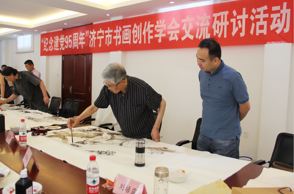 濟寧新聞網(wǎng)6月20日訊(濟寧臺 蔡珂珂)近日,慶祝建黨95周年濟寧書畫創(chuàng)作學會交流研討活動在心心酒業(yè)舉辦,原市級老領導、濟寧書畫創(chuàng)作學會名譽會長高建剛出席研討會。濟寧書畫創(chuàng)作學會會長魏延俊主持會議。濟寧孔孟書畫院院長、濟寧書法家協(xié)會主席、濟寧市美協(xié)主席、濟寧市青年美協(xié)主席等多位書畫家參加研討交流,大家共同暢談黨的輝煌歷程,共同交流書畫創(chuàng)作,暢談美好未來。