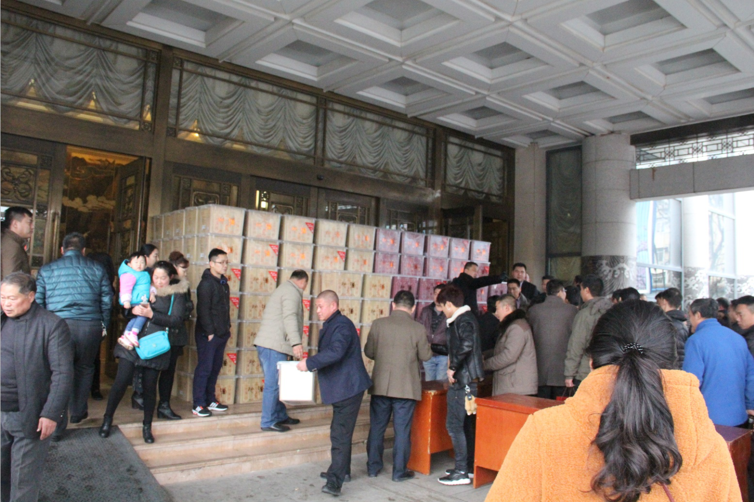 12月13日,公司元旦春節廠商聯誼會在運河賓館隆重舉行,聯誼會上,各級經銷商爭先恐后開票訂貨。截至當日中午,訂貨金額突破歷史新高。一位經銷商說:經營心酒30多年了,現在的心酒名氣大,品質優,口碑好,不愁賣,選擇心心酒業,放心。